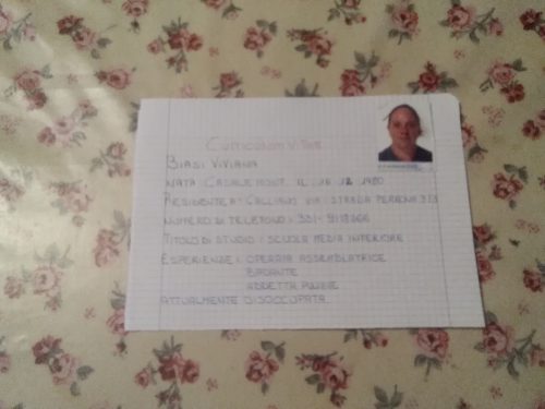 Mi chiamo Viviana Biasi e sono una ragazza disoccupata in cerca di lavoro e sono disponibile a lavorare da subito e ho gia esperienza nel settore dell'assistenza anziani e ho maturato esperienza nel settore dell'assistenza anziani lavorando in un paese vicino a casa mia, per ben 2 anni con pazienti allettanti.